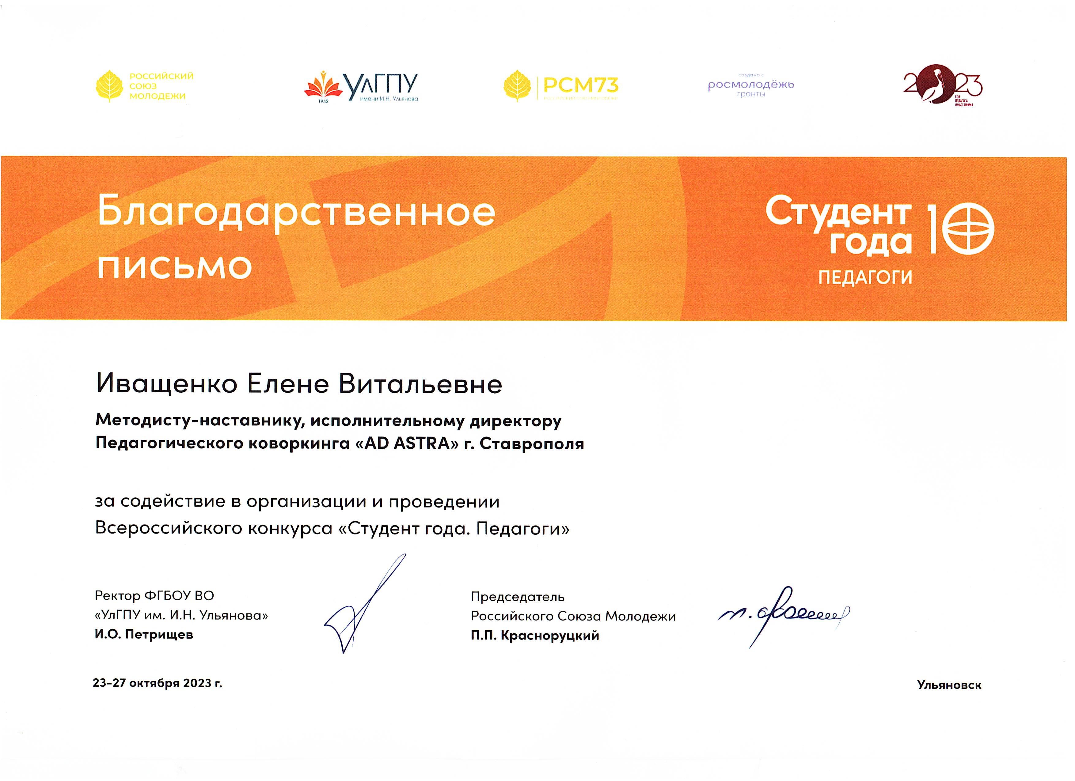 декабрь 2022- по настоящее время методист-наставник педагогического коворкинга AD ASTRA